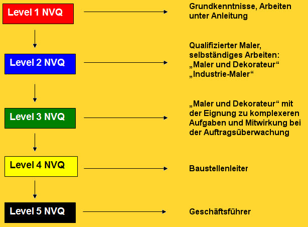 Die britische Qualifikation ist die "National Vocational Qualification" (NVQ) für England und Wales