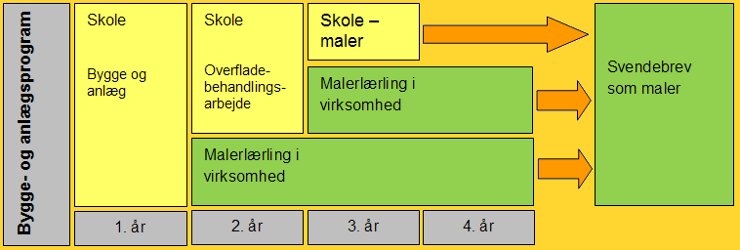 Standardmodellen for erhvervsuddannelse (videregående oplæring) kaldes ofte 2+2-modellen. Dette hentyder til, at standardprogrammet varer 4 år, heraf to år med skolekurser efterfulgt af to års oplæring i en virksomhed, der svarer til ét år på skolen. Modellen har en vis fleksibilitet afhængigt af de forskellige programmer.