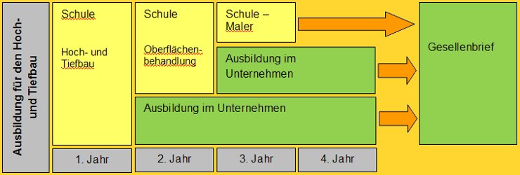 Das Standard-Modell für die berufliche Bildung auf der Sekundarstufe II wird oft als das 2+2-Modell bezeichnet. Dies bezieht sich auf die Aufteilung des normalen 4-Jahres-Programmes in zwei Jahre schulischer Ausbildung, gefolgt von zwei Jahren Ausbildung im Unternehmen, wovon ein Jahr mit der Schule korrespondiert. Das Modell gestaltet sich je nach Programm recht flexibel.